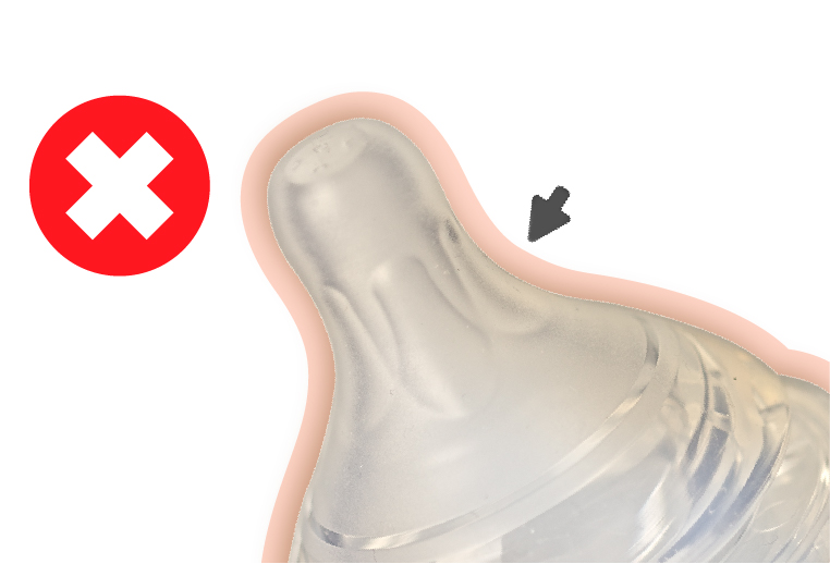 หากจุกนมที่เคยมีความยืดหยุ่นดีกลับมีสภาพ ย้วย แข็ง หด หรือเสียรูปจากการใช้งานและการทำความสะอาดหลายครั้ง ก็ถึงเวลาที่ควรเปลี่ยน เพื่อประสิทธิภาพการให้นมที่ดีที่สุดแก่ลูกน้อย
