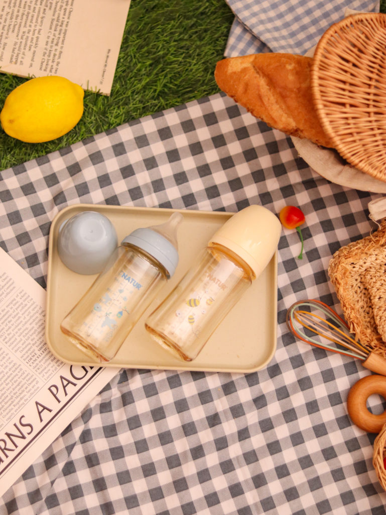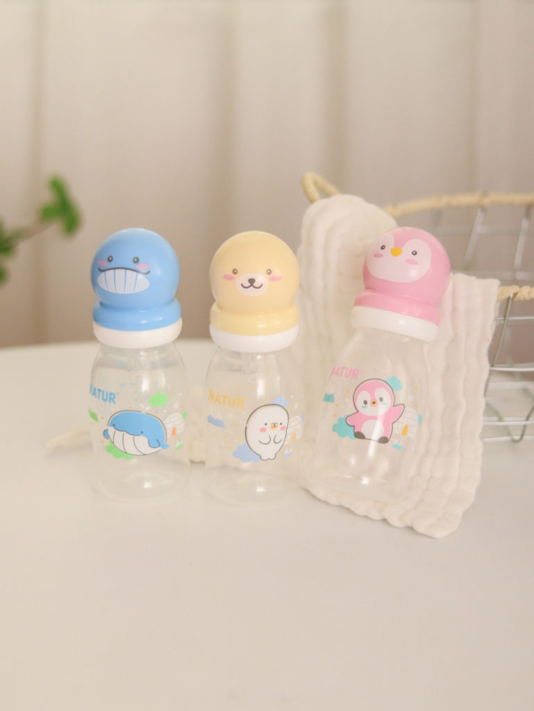 ขวดนมที่มาพร้อมจุกนมแบบที่เหมาะกับลูกแรกเกิดจะช่วยให้การให้นมด้วยขวดเป็นเรื่องง่าย ไม่ว่าจะอยู่บ้านหรือต้องออกนอกสถานที่ โดยแนะนำให้ซื้อขวดนมขนาด 4oz – 5oz ซึ่งเป็นขนาดที่เหมาะสมกับวัยแรกเกิด