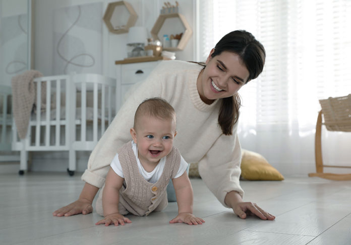 ควรจัดพื้นที่ปลอดภัยและกว้างพอให้ลูกได้ฝึกนอนคว่ำ คืบคลาน หาของเล่นที่มีสีสันและรูปทรงหลากหลายมาให้ลูกได้ลองจับ เช่น ลูกบอลและตุ๊กตานุ่มนิ่ม ของเล่นลอยน้ำหรือกล่องหยอดรูปทรง